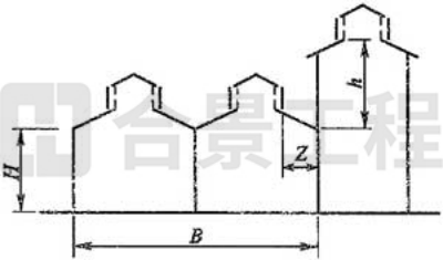 注:當Z/h>2.3時,建筑物的相關(guān)尺寸可不受限制。