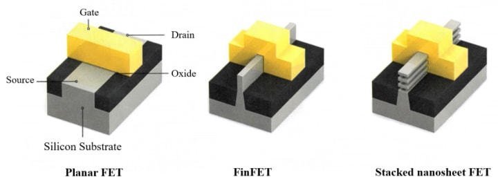 晶體管的最小的結(jié)構(gòu)寬度在22nm之前,通常是柵極寬度,被稱為特征尺寸。隨著晶體管面積的日益縮小,特征尺寸和廠家的命名逐漸脫節(jié),而柵極寬度也不再是晶體管的最小結(jié)構(gòu)寬度,例如在FinFET中,F(xiàn)in的寬度通常是小于柵極寬度的,在GAA堆疊納米片晶體管中,納米片的厚度也是要小于柵極寬度的。